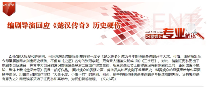 但当大家找到历史硬伤去问他后,你就真正见识到了,什么叫“煮熟的鸭子嘴硬”,下面我整理了一下2013年1月,网易娱乐采访编剧汪海林和导演高希希的内容,你足可以看出导演高希希是怎么祸祸剧本的。